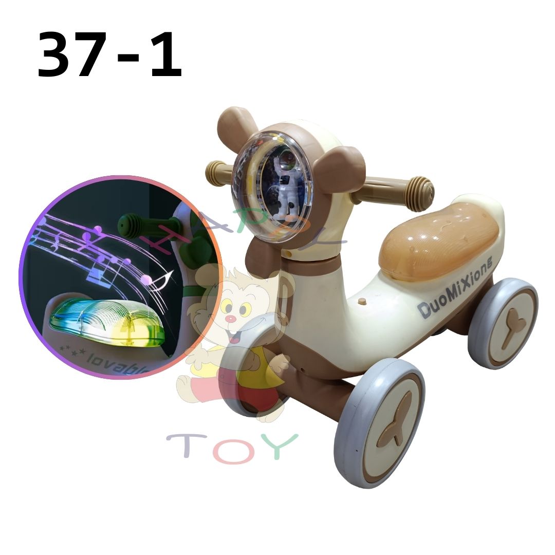 - Moto con Astronauta es perfecto para los pequeños de la casa, diseñado con luces y sonido que haran que cada paseo sea una experiencia inolvidable.